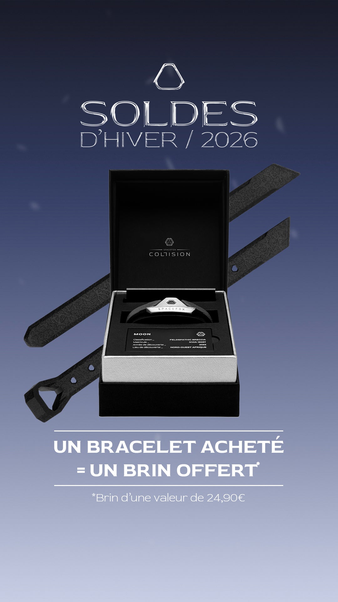 Avec la gamme Collision, Spacefox est fier de proposer des bracelets conçus et fabriqués en France, alliant innovation et artisanat d’exception. Du sertissage des véritables météorites à l’usinage des boîtiers, en passant par la fabrication des brins en élastomère, chaque étape reflète le savoir-faire unique des artisans et industriels français. Offrez-vous un bijou authentique, fabriqué en France, qui allie design futuriste et qualité artisanale.