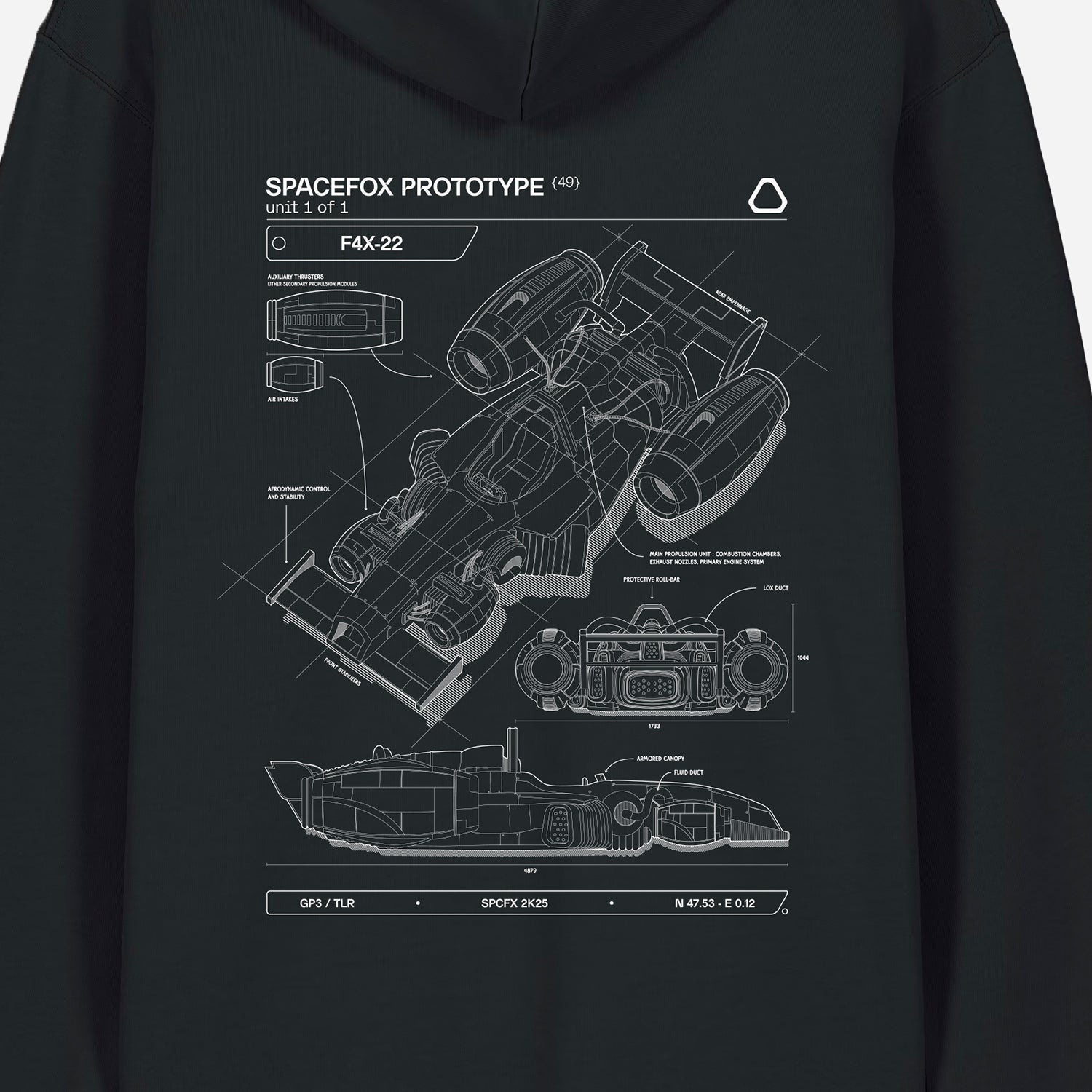 Retrouvez le mythique vaisseau F4X-22 sur ce sweat à capuche noir créé spécialement pour le GP Explorer 3.